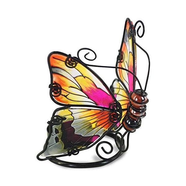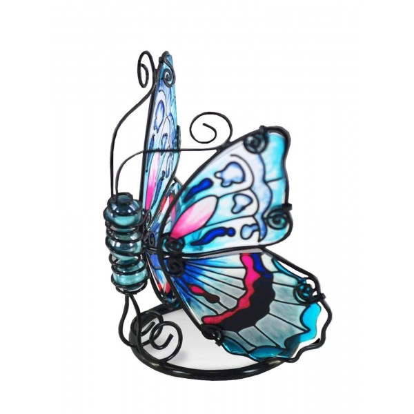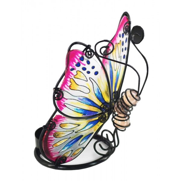 happyDko Set 4 Photophores Papillons, Métal et Verre, Effet Aquarelle, H 12 cm