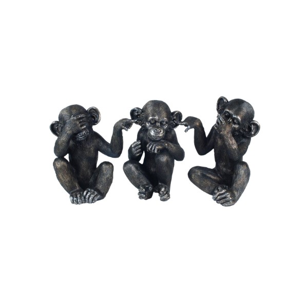 Set 3 Singes de la sagesse, Finition Antic Line, H 19 cm