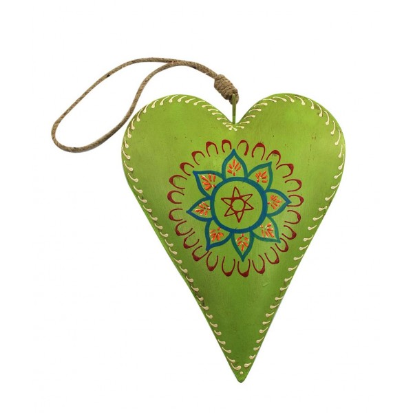 Suspension 6 coeur peint métal XL, H 21 cm