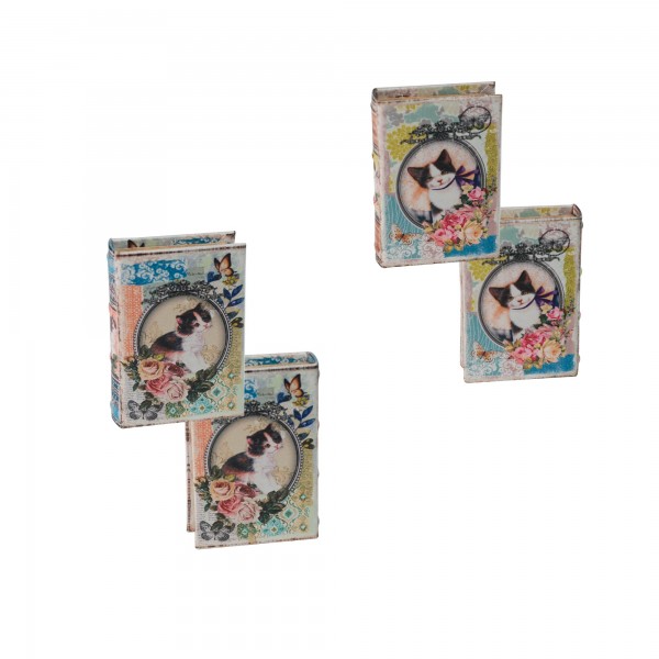 Boite Livre, Motif Chat romantique et floral Chat, Mod 2, H 14 cm