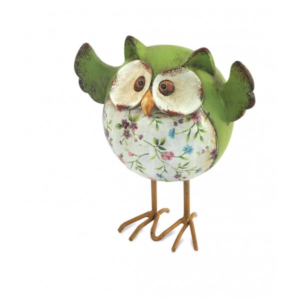 Chouette fleurie Verte Pattes Métal, 11 cm