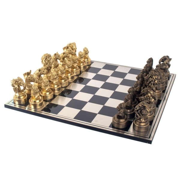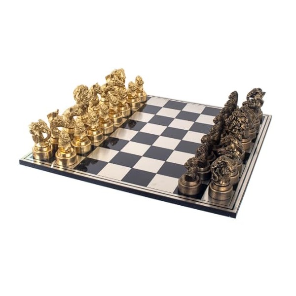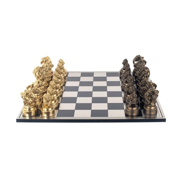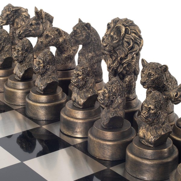 SIGNES GRIMALT Grand échiquier avec pièces animalières en résine, 5 Animaux de la Savane, 60 x 60 x 16 cm