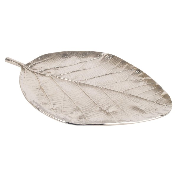 Feuille argentée en Aluminium, Plateau de Service, décoratif ou Vide-Poche, Longueur 46 cm