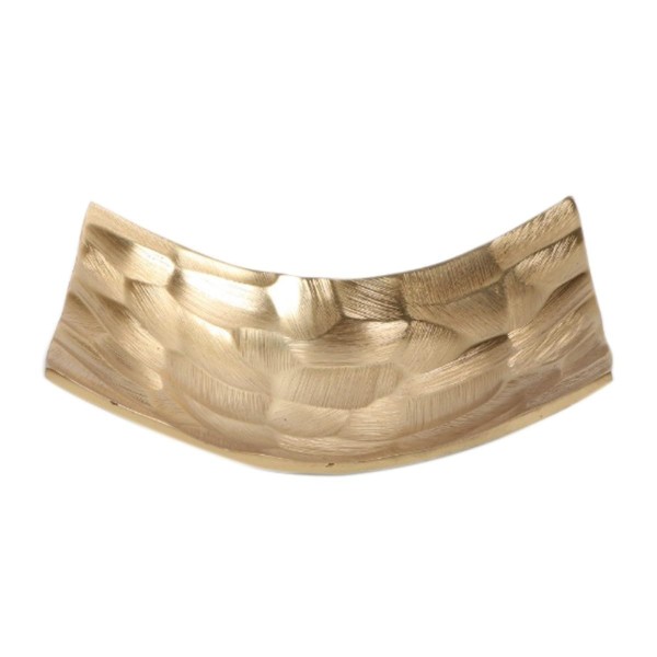 Plateau incurvé et doré en Aluminium, Effet brossé, Plateau de Service, décoratif ou Vide-Poche, Longueur 21 cm