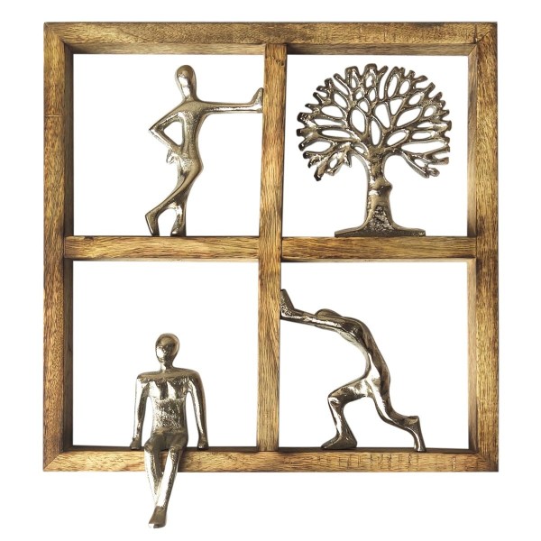 SIGNES GRIMALT Déco murale 3 Personnages en métal, arbre de vie et structure design, aluminium et manguier, hauteur 40 cm