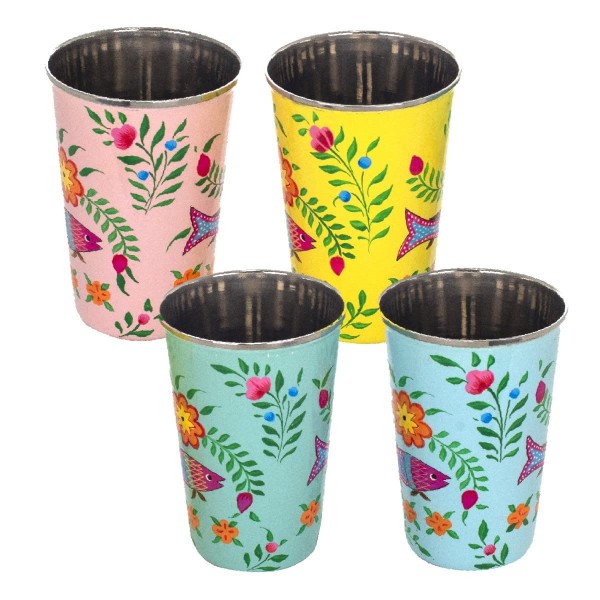 By SIGRIS Lot de 4 verres en métal émaillé multicolore 12 x 8 x 8 cm