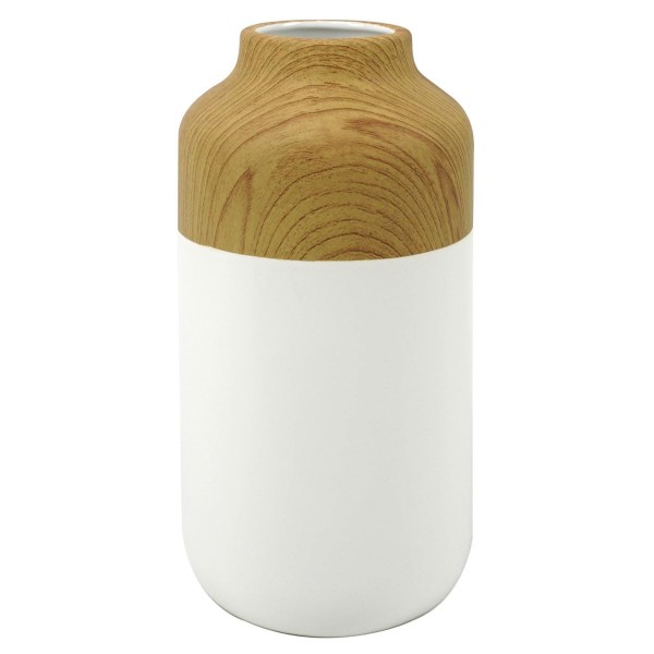 Grand Vase Bouteille en céramique, Marron et Blanc, Aspect Bois et résine, Finition Semi-Brillante, Hauteur 34 cm