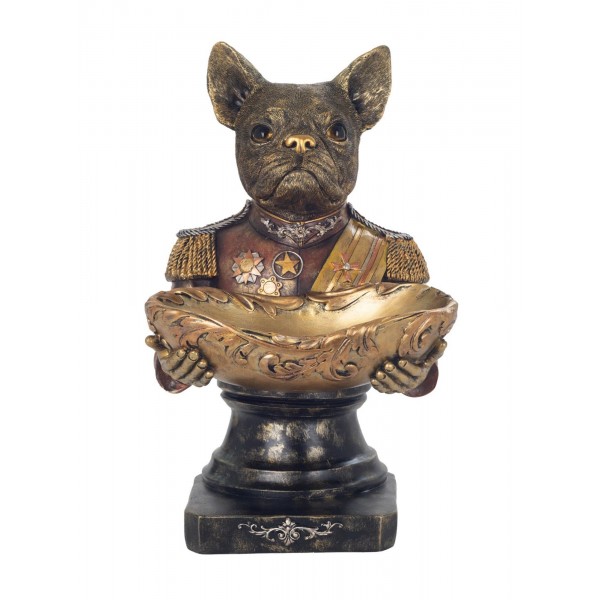 SIGNES GRIMALT Figurine Chien Bouledogue, Costume d'époque et coupelle Vide Poche, Hauteur 36 cm