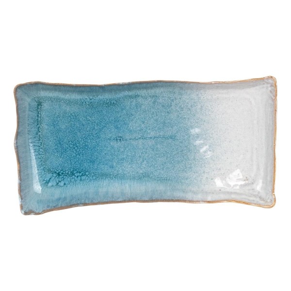 Plateau Droit décoratif en grès Bleu, Forme huitre, Collection Marine Quimper, Longueur 17 cm