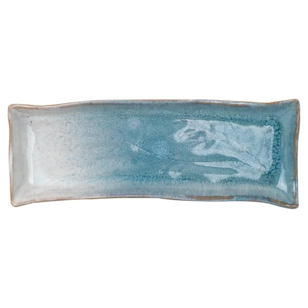 Plateau Droit de Service ou décoratif en grès Bleu, 2 Compartiments, Collection Marine Quimper, Longueur 27 cm