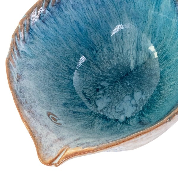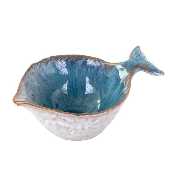 SIGNES GRIMALT Set 2 petits bols de service ou décoratif, Poisson en grès bleu, Collection marine Quimper, longueur 12 cm