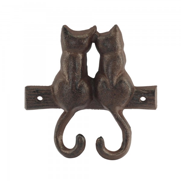 happyDko Patère Deux chats de dos en fonte, 2 Crochets polyvalents, Longueur 12 cm