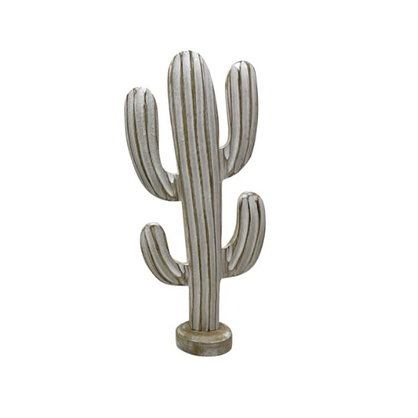 SIGNES GRIMALT Décoration Cactus en Bois – Statue Déco Naturelle Blanc Patiné – Objet Décoratif Bohème – 40 cm