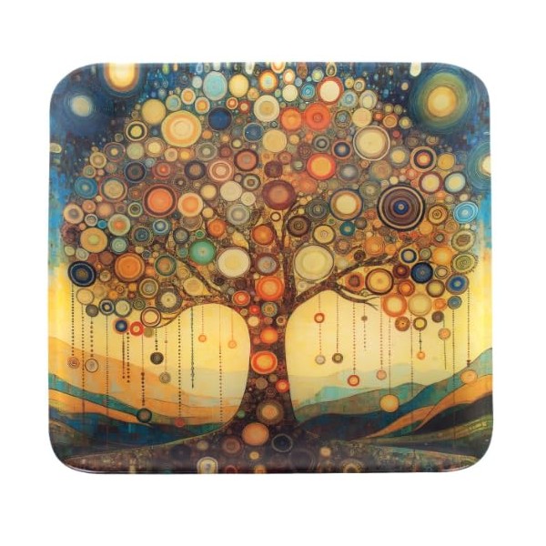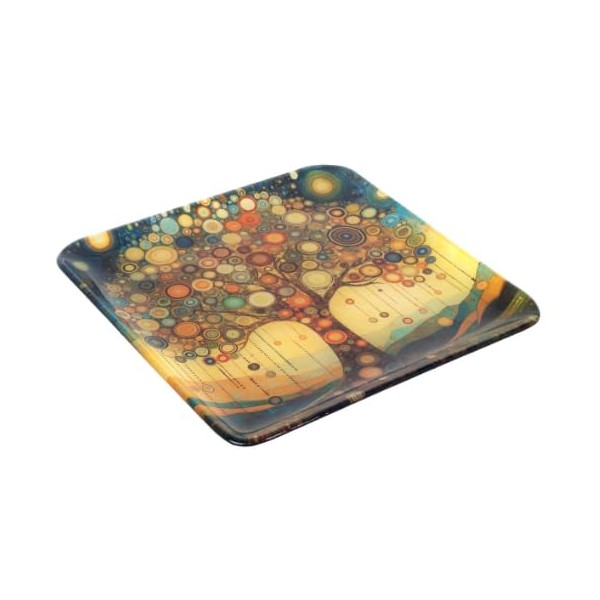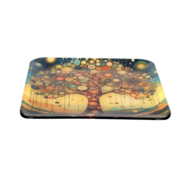 SIGNES GRIMALT Assiette Carrée en Verre Arbre de Vie 30x30 cm – Plateau Décoratif Design Coloré