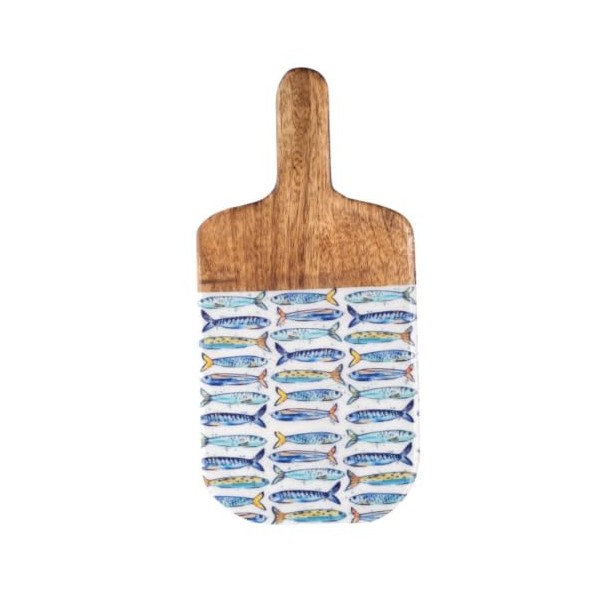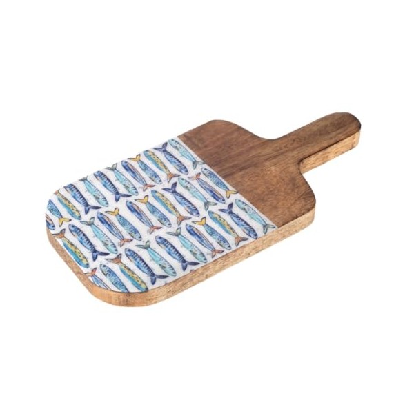 Planche à Découper Bois & Résine Motif Poissons – 30,5 x 15,5 cm – Planche de Cuisine Décor Marin – Design Bleu Naturel