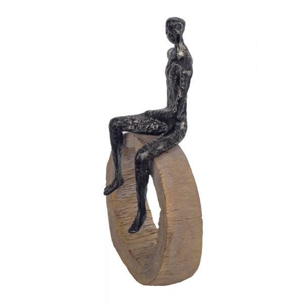 SIGNES GRIMALT Statuette Design : Homme sur Cercle, Men & Stone, H 34 cm