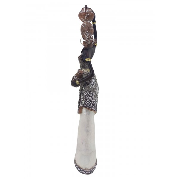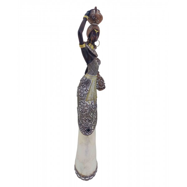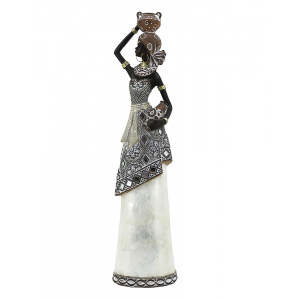 ORIGEN Statuette Grande Africaine Debout et Robe nacrée, Collection Afrikana, H 40,5 cm