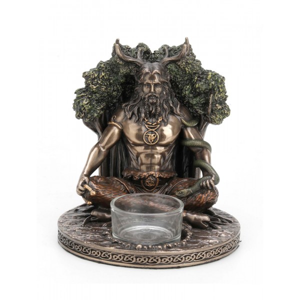 SIGNES GRIMALT Statue Résine Antic Line : Cernunnos, Dieur Celte aux Bois de Cerf et Bougeoir, Hauteur 13,5 cm