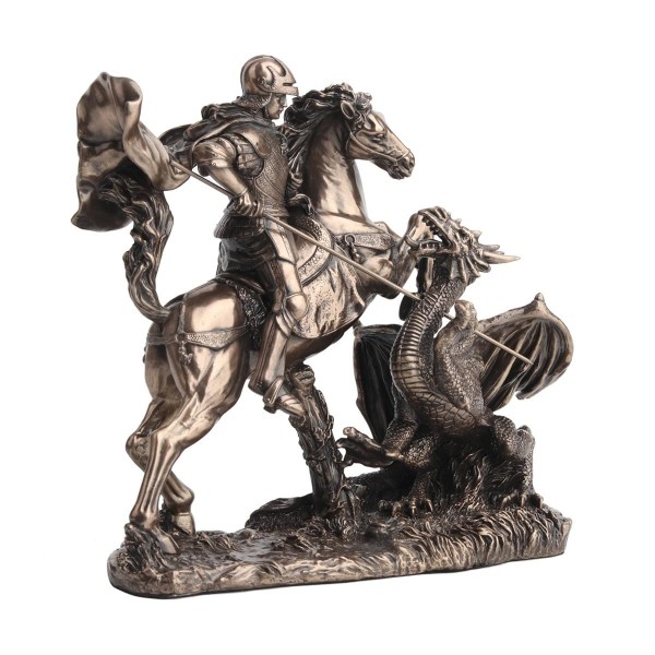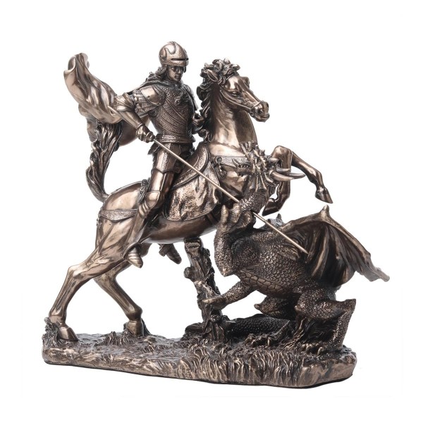 SIGNES GRIMALT Statuette résine Antic Line : Saint George terrassant Le Dragon, Longueur 17 cm