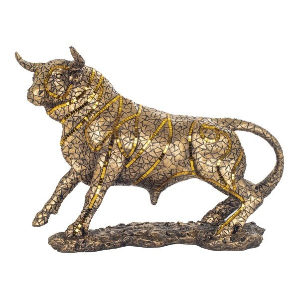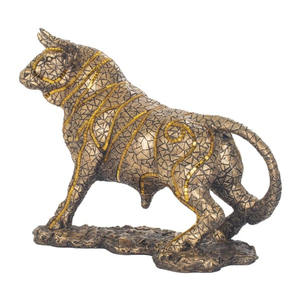 SIGNES GRIMALT Grande Statue Taureau Design doré et cuivré avec Inserts, Collection MIKADOR, Longueur 29 cm
