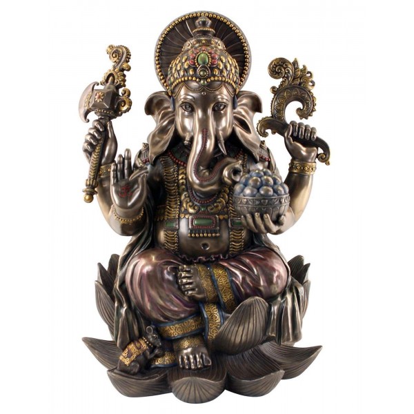 G&S Statuette Ethnique XXL : Ganesh & Lotus, H 54 cm