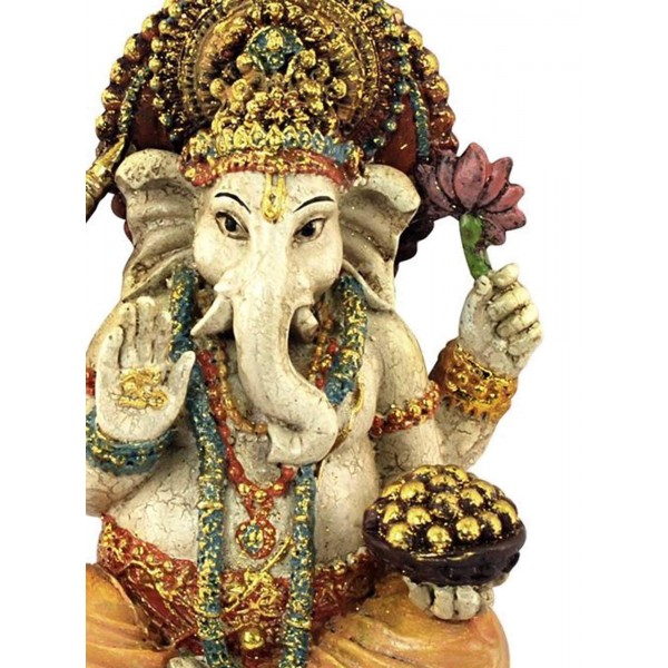 Statuette Ganesh, Modèle Ecru & Jaune, Tons Pierre, H 16 cm