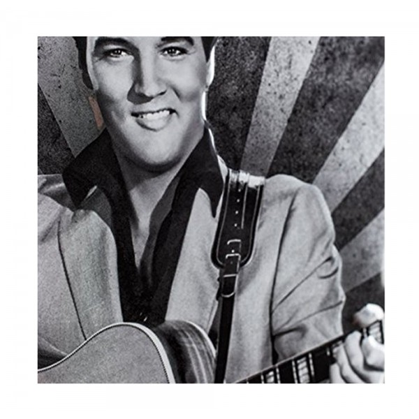 - Plaque mettant en scène Elvis Presley en train de jouer de la guitare.