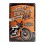 Plaque métallique orange et noire sous licence officiellle de 30 cm de hauteur et 20 cm de largeur à l'effigie de la marque Harley Davidson avec le nom de la marque, le slogon The original ride, une moto Harley et le logo de la marque.