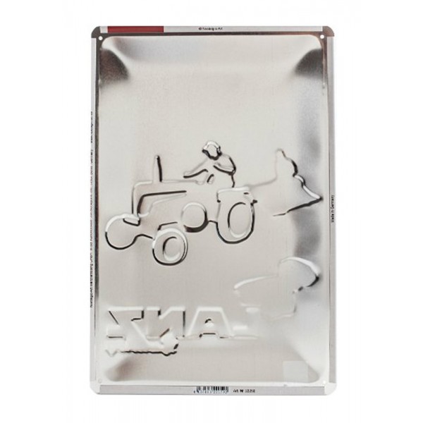Plaque métallique sous licence officiellle de 30 cm de hauteur et 20 cm de largeur représentant un tracteur de la célèbre marque allemande Lanz.