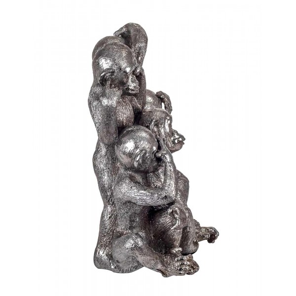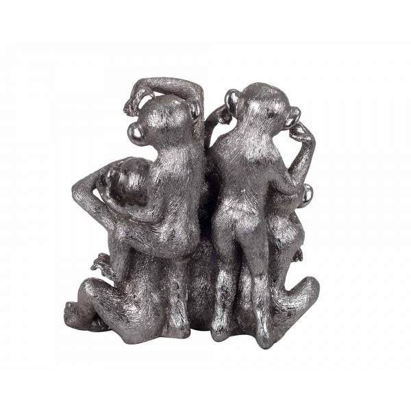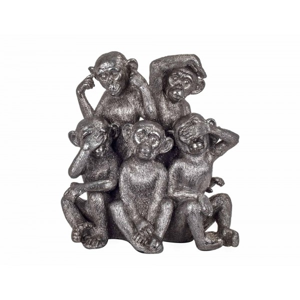 SIGNES GRIMALT Statue en résine, Cinq Singes de la Sagesse, Modèle Argenté. Hauteur 22,5 cm