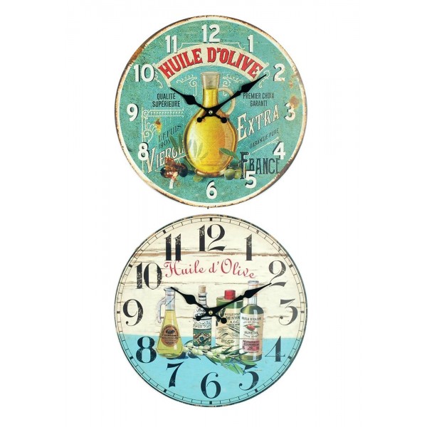 Horloge MDF thème Huile d'olive extra, Diam 34 cm