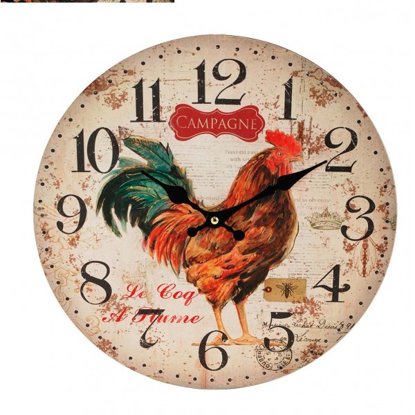Petite horloge diamètre 34 cm, motif Coq de campagne.