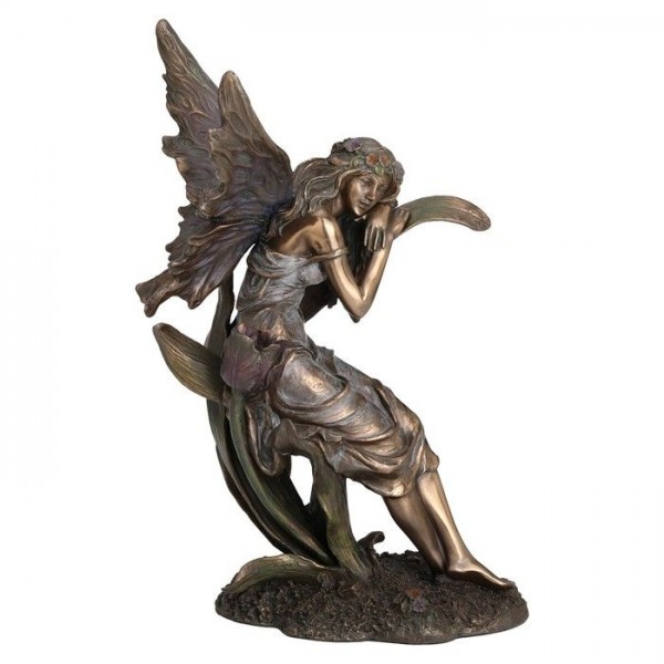 Statue de Fée Assise assoupie sur une Fleur 22cm Décoration Fantasy couleur Bronze