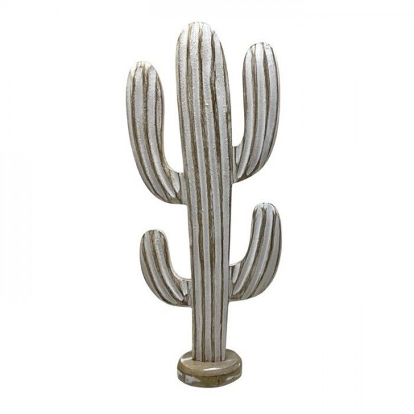 CACTUS Statue Décoration d'Intérieur en Bois de 51cm Gris écru Voyage évasion