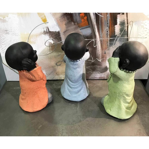 G&S Statuettes 3 Moines de la Sagesse Debout, Color Line, Hauteur 24 cm