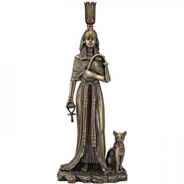STATUE de NEFERTITI reine d'Egypte ANTIQUE neuve résine Laitonnée figure EGYPTOLOGIE épouse d'AKHENATON